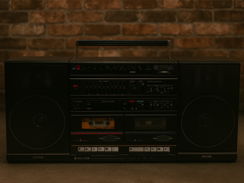 В свое время Silver SR3030 был очень популярен у любителей поездок на природу с собственной мощной музыкой. Этот аппарат, торговой марки Shin-Shirasuno Electric Corporation (Япония), сегодня чаще всего заказывают как ностальгический прибор из 80-х для корпоративных вечеринок в стиле ДИСКО, киносъемок и декора театральных постановок о быте СССР. Устройство находится в полном рабочем состоянии: ловит радио, проигрывает кассеты, отстегиваются колонки и может обходиться без электросети более суток!