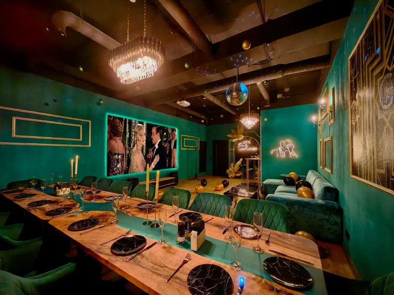 Связаться с намиЗал Gatsby в московском Memory Place — это идеальный лофт для вашего события до 30 гостей. Интерьер очаровывает глубоким зелёным, сияющим золотом и тёплым деревом. На 50 м² доступна посуда, мощный звук, свет, проектор, караоке, и можно приносить свои угощения. Бронируйте от 4 часов и получайте дополнительный час в подарок (суббота исключена). Расширьте торжество с ведущим, диджеем, фотосессией, барменом, кальяном или оформлением шарами.