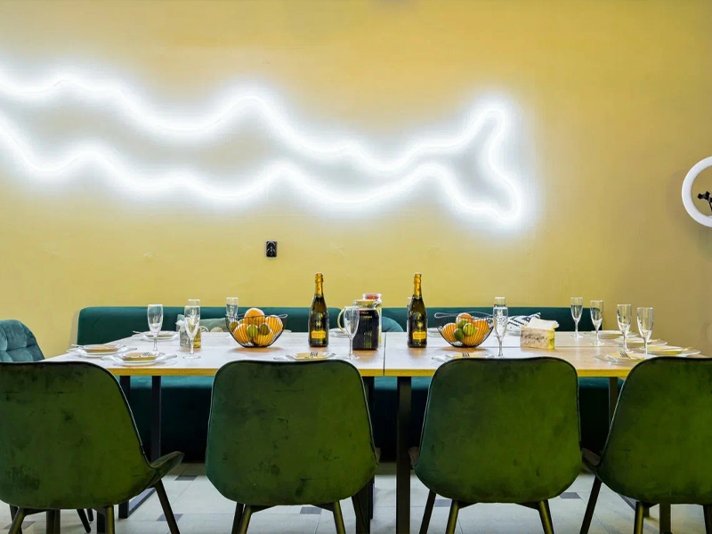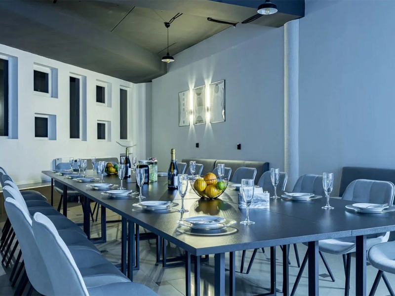 Связаться с намиMango House — впечатляющее пространство, созданное под вдохновением индустриальной архитектуры. Семиметровые потолки подчеркивают грандиозный масштаб и придают залу ощущение простора и свободы. В оформлении органично сочетаются дерево, бетон, кирпич и металл, создавая выразительную атмосферу с характером.