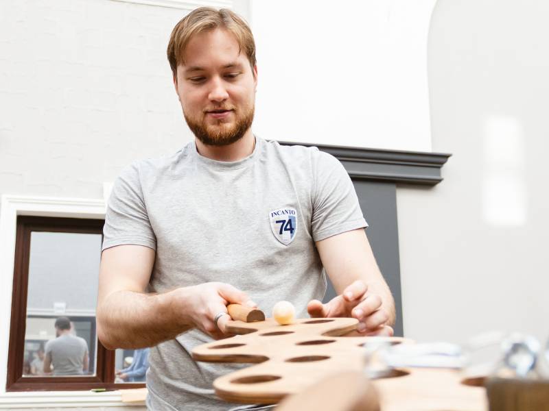 Динамичное испытание на точность, концентрацию и контроль движений. Мастер игры задаёт участникам необходимое количество баллов, после чего игрокам предстоит набрать их, управляя шариком на игровом поле.