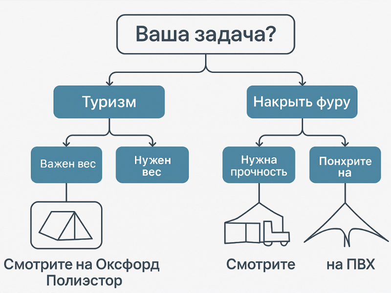 Средний сегмент, рассчитанный на 3-7 лет, - качественный Оксфорд с PU/PVC покрытием или брезент. Это оптимальное соотношение цены и качества для большинства задач, от торговых шатров до чехлов на оборудование.