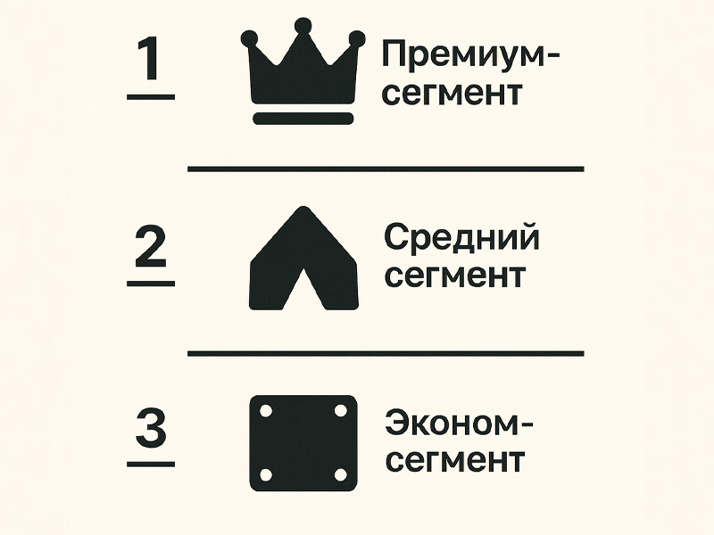 | Ориентировочная цена | Высокая | Средняя | Низкая | Средняя–высокая |