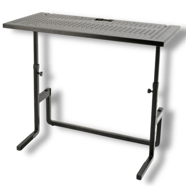 Мобильный складывающийся рабочий DJ-стол портативен, функционален и не тяжел. DJ-233 любим и часто гастролирующими музыкантами! Подходит для всех видов ди-джейского оборудования: DJсистемы, DJконтроллеры, USB/CDпроигрыватели, DJмикшеры, винилы, драммашины, мидиклавиатуры. Устойчивый конструктив из черненой стали надежно размещает необходимую для выступления артиста аппаратуру. Перфорация верхней поверхности произведена для облегчения и вентиляции аппаратов, усилена распорками. Ноги-телескопы регулируемы под четыре высотности. Устройство складывается в считанные мгновения. Транспортируется и переносится за спец-рукоятку. Возможно дооснащение подставкой для ноута LPH/T или планшета IPS-16.
