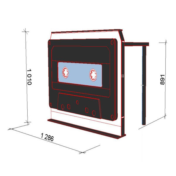 Универсальный DJ-стол в форме аудио-кассеты с яркой ностальгической внешностью и разноцветной подсветкой (с пультом управления программами, яркостью) внешней стенки, а также белой подсветкой рабочей поверхности. Идеален для модных вечеринок, клубов, лофтов, выставок и выпускных. Поставляется в чехле. Переносится двумя техниками, легко и быстро устанавливается. Вмещает микшер, CD-проигрыватели и дополнительное оборудование. Складные ножки экономят место при хранении.
