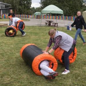 Внутри специальной надувной площадки находятся две пневматические пушки, стреляющие мягкими шариками. «Дуэлянты» становятся друг напротив друга и пытаются попасть в своего оппонента как можно чаще.