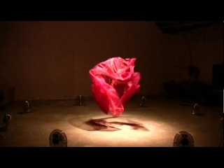 - Принцип работы: основан на аэрозавихрениях, организованных вентиляторами-ветродуями, расставленными равноудаленно по окружности, с легкой материей, расположенной по центру.