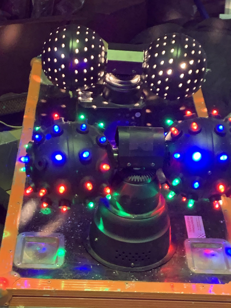 Прокат фаер-болов типа Roto Balls TRI LED с цветными и белыми лучами. Эти двойные шары-светильники легки в применении – достаточно включить в сеть! Они портативны и не требуют сложных пультов управления. Разработанные по LED-технологии ТриКолор, они создают эффектные лучи разных цветов. Устройства вращаются относительно основания и своих осей, меняя цвет в такт музыке или автоматически. В небольших помещениях могут служить центральным эффектом с широкой областью покрытия. Дополнительно предусмотрена регулировка скорости вращения системы.