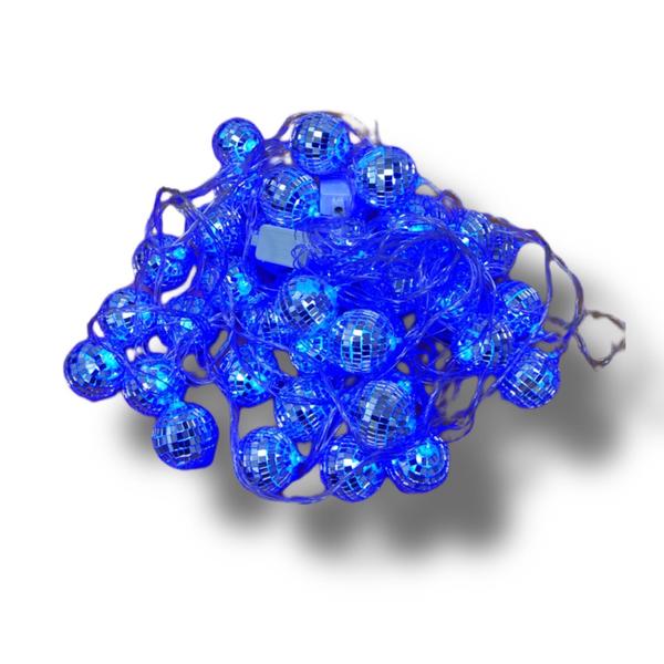 Оригинальное украшение для праздников или вечеринок в стиле "диско"! Маленькие дискобольчики с синими светодиодами внутри раскрасят торжество отражающими поверхностями и голубой подсветкой. Светодиодные блестки шикарно подсветят ваше Рождество или праздничную дискотеку, создавая узоры и добавляя отраженных эффектов от световых приборов. Гибкий провод позволяет оплетать колонны, повторять формы фото-зоны. Отличная находка для сэлфи и уюта. Стильное оформление New Year-Party!