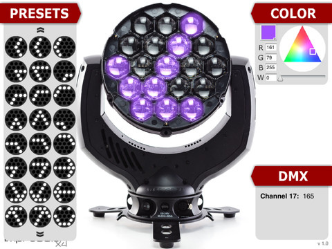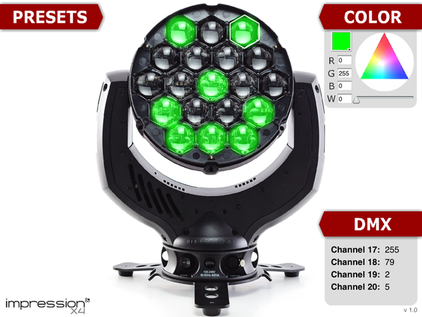 Взяв в аренду у нас светодиодные головы GLP impression X4, Вы будете приятно поражены их функционалом. Ваше настроение резко подскочит вверх, когда голова «улыбнется» вам или «состроит глазки», покажет направление с помощью функции направляющей стрелки или начнет обратный отсчет. А объединив устройства в связки из четырех, восьми или двенадцати штук вы сможете получить практически безграничное количество разных эффектов. Такой набор обязательно привлечет внимание посетителей вашего мероприятия к сцене или другой, требующей внимания точке. GLP impression X4 первый раз был показан на крупнейших выставках Европы в 2012 году и произвел неизгладимое впечатление на участников, занимающихся шоу бизнесом. Память головы содержит большое количество макроэфектов и цветовых пресетов.