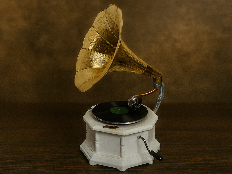 Современную реплику старинного звукопроизводящего прибора с одной пластинкой в комплекте чаще всего заказывают в качестве оригинального реквизита для театральных постановок, фото-зон на корпоративах, телевизионных и видео-съемок.