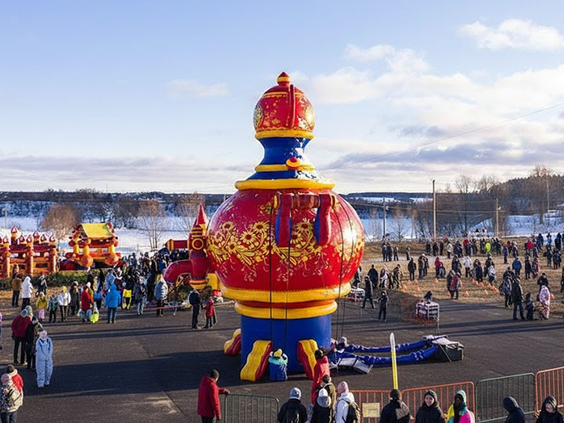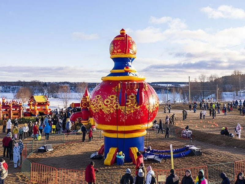 Качели «Самовар» — это яркий аттракцион для мероприятия в древнерусской тематике, и не только! Надувные качели имеют высоту целых 10 метров и выдержат вес даже взрослого человека! Аренда аттракциона Качели «Самовар» — прекрасная идея, если на вашем мероприятии ожидается большой наплыв гостей. Всем будет, чем себя занять, ведь занимая в длину всего 7 метров, эти качели имеют целых 6 мест!
