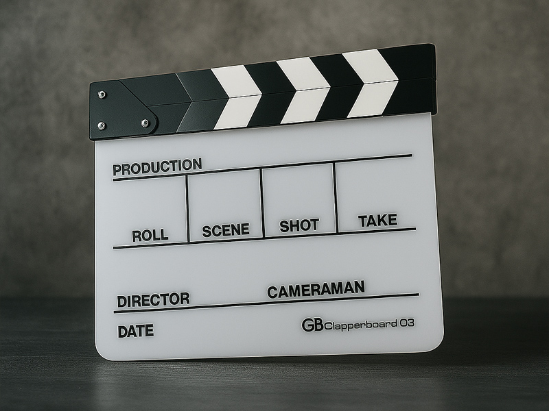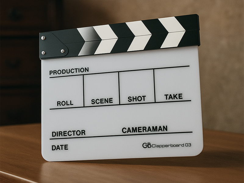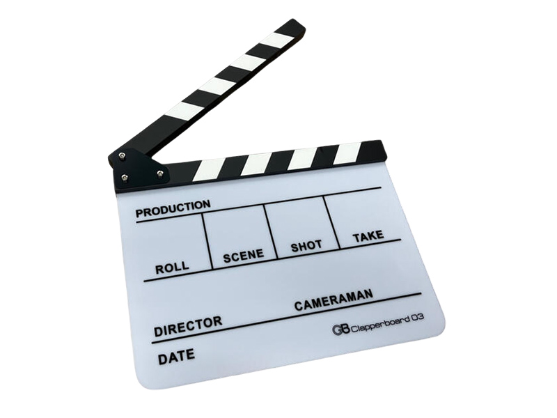 Предлагаем в прокат белую кинохлопушку-Clapperboard. Эта модель с акриловым покрытием позволяет легко наносить маркерные надписи для обозначения дублей и кадров. Встроенный магнит обеспечивает четкий стук и предотвращает случайное срабатывание. Идеально подходит не только для киносъемок и видеоклипов, но и как стильный элемент декора для корпоративных мероприятий и частных праздников в стиле синематографа.