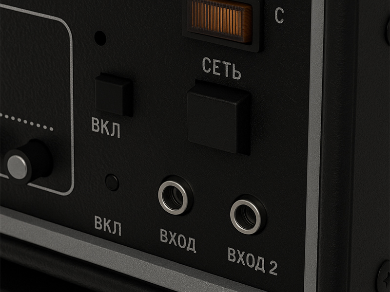 - Кнопки включения и снижения на 10дБ, ВЧ-НЧ.
