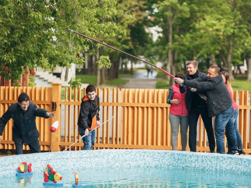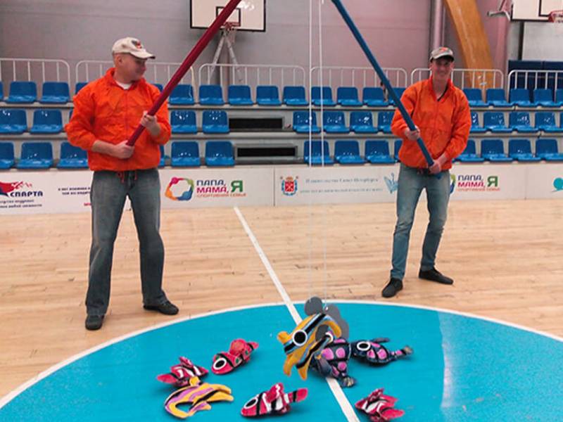 Увлекательное соревнование на быстроту и мастерство ловли рыбы. Команда должна проявить себя, пользуясь уникальной «Мега-удочкой». В арсенале — десять пластмассовых рыбок с металлическими хомутиками, которые нужно ловко зацепить удилищем и извлечь из импровизированного водоёма. Кто поймает больше всех, получит заслуженную награду!