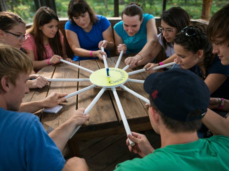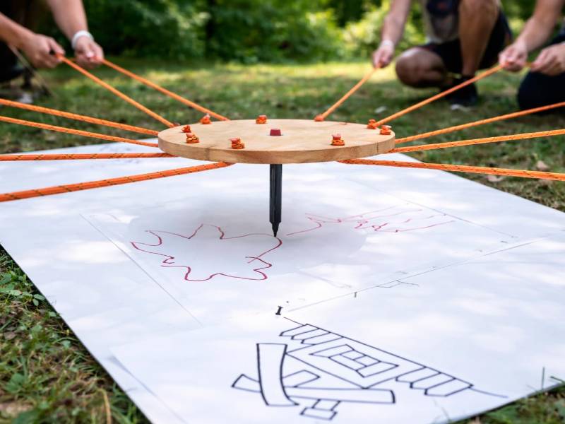 Игра-тренинг для развития командного взаимодействия и координации. Участники с помощью специальных веревок управляют крепящимся на конструкции карандашом, стараясь максимально точно воспроизвести предложенный рисунок. Игра способствует развитию коммуникативных навыков, точности и согласованности действий всей группы, укрепляя доверие и взаимопонимание среди участников.