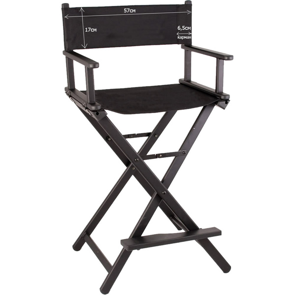 Предлагаем давно назревшую своей актуальностью для Москвы услугу аренды режиссерского кресла или проката стульчика визажиста, что по сути одно и то же. Отныне у нас можно заказывать для съемок клипа или кино режиссерский стул высокого качества, не затрачиваясь наприобретение и не думая о его складировании. Стандартно-высокий стул легко раскладывается и складывается после смены или по окончании всего съемочного процесса. Цвет тканевых элементов (сидение-спинка) черный, как и лаковое покрытие на частях из дерева-ясеня.