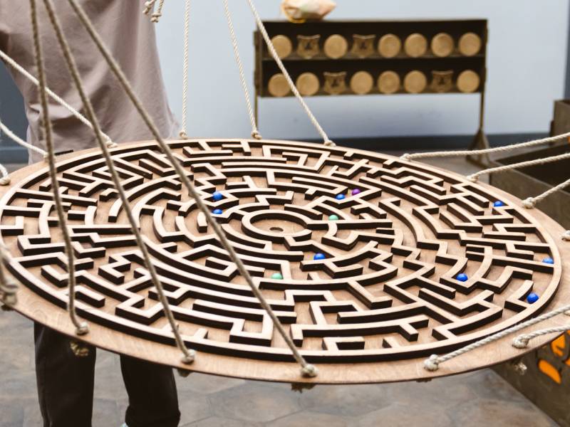 Задача игроков — провести шарик по сложному и запутанному маршруту круглого лабиринта к его центральной точке.