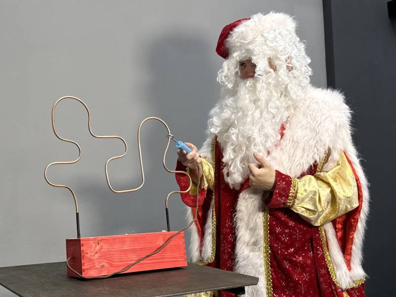 Прокачиваем ловкость рук, чтобы новогодние ёлочные шары не разбивались, а подарки быстро упаковывались в ваших руках. Участнику нужно провести металлическое кольцо вдоль извилистой проволоки от одного конца к другому, не касаясь её. При малейшем контакте срабатывает сигнал, и попытка считается неудачной. Идеально подходит для сбора гостей в качестве игровой станции, конкурсов и активностей с ведущим.