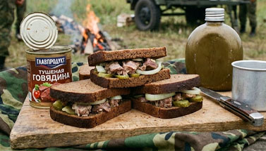 - Подготовку ингредиентов: нарезка овощей, подготовка тушенки и крупы по армейским стандартам.