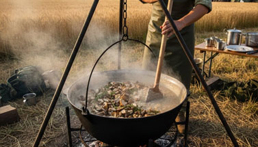 Такой формат идеально подходит для корпоративных тимбилдингов, празднования 23 февраля, 9 мая или просто для активного отдыха на природе. Совместная работа у настоящего полевого котла сплачивает коллектив лучше любых тренингов.