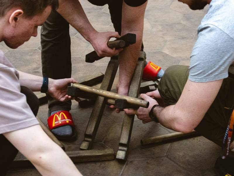 Инженерное командное испытание на логику, пространственное мышление и слаженную работу. Конструкция моста состоит из одинаковых деталей, которые удерживаются между собой без дополнительных креплений — только за счёт правильного расположения элементов.