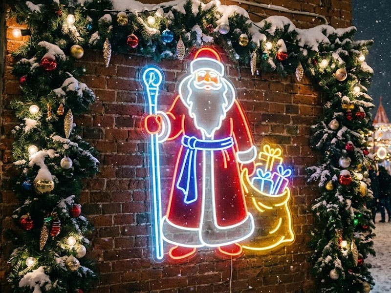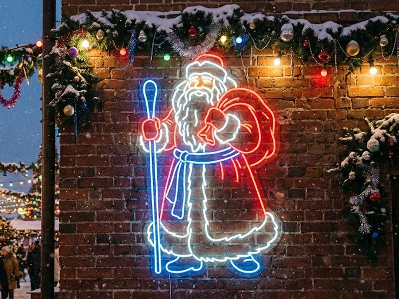 Неоновая вывеска «Дед Мороз» в аренду — эффектный новогодний акцент для фотозон, корпоративных мероприятий, детских праздников и праздничного оформления площадок. Яркий неоновый контур создаёт атмосферу зимней магии и отлично смотрится на фото. Идеально подходит для indoor- и outdoor-декора. В аренду входит доставка, установка и безопасное подключение.