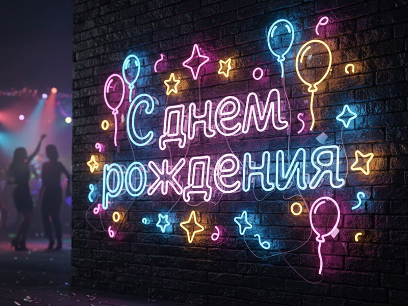 Неоновая вывеска «С днём рождения» в аренду — эффектный элемент декора для праздников, вечеринок, фотозон и торжеств любого формата. Мягкий свет создаёт атмосферу радости и стиля, подчёркивая тематику события и улучшая фотографии. Подходит для помещений и уличных площадок. В аренду входят доставка, установка и безопасное подключение.