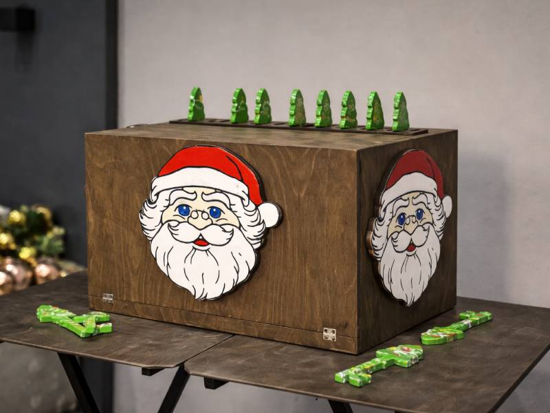 В ключницу команда вставляет заработанные ключи. Как только ключи найдены, - открывается замок ключницы, и команда забирает подсказку для финального задания. Идеально подходит для сбора гостей в качестве игровой станции, конкурсов и активностей с ведущим.
