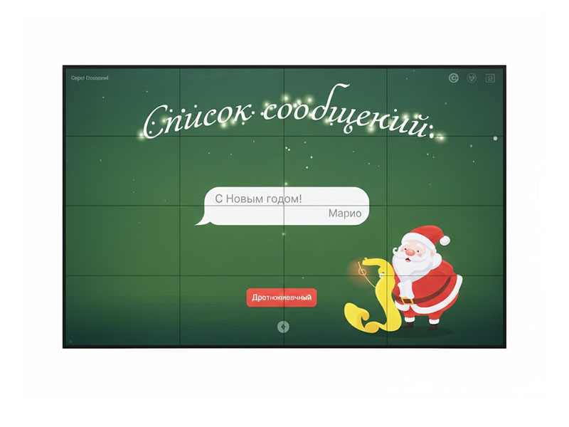 «Новогодняя почта» — это интерактив, где гости оставляют пожелания, а сообщения появляются на большом экране в реальном времени. Эффектно смотрится на корпоративных вечеринках, новогодних мероприятиях и семейных праздниках. Простая настройка, яркая подача и вовлечённость гостей гарантированы. В аренду входит оборудование, техническая поддержка и настройка.