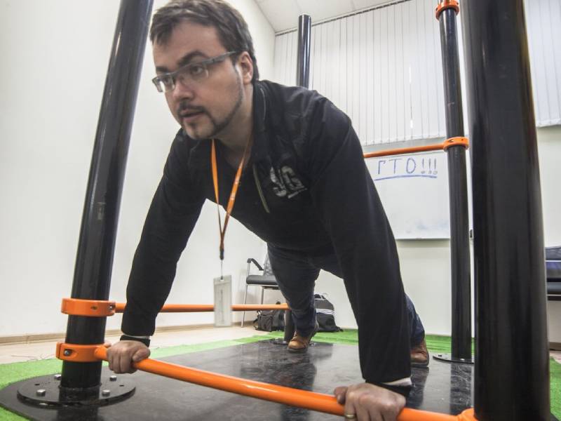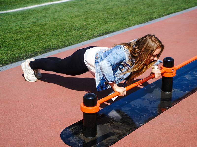 Силовое упражнение на выносливость и силу верхнего плечевого пояса. Выполняется в упоре лёжа на платформе. Задача участника — за отведённое время выполнить максимальное количество повторений, соблюдая правильную технику и контроль движений. Исходное положение: руки на ширине плеч, кисти вперёд, локти разведены не более чем на 45°, плечи, туловище и ноги образуют прямую линию. На опускании участник касается грудью платформы и возвращается в исходное положение. Упражнение задействует грудные мышцы, трицепсы, плечи и мышцы кора, развивает силовую выносливость, стабильность корпуса и контроль тела.
