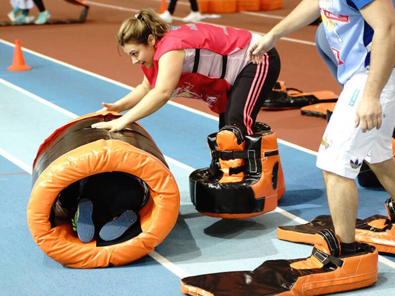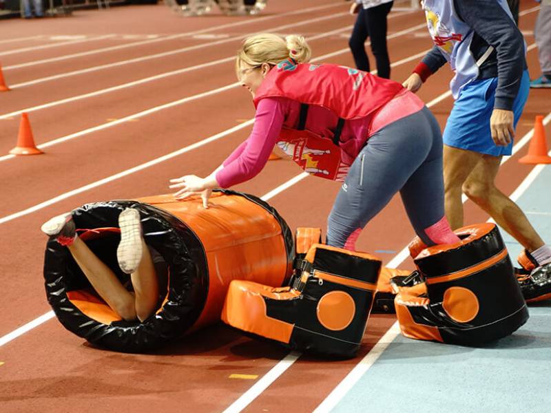 Захватывающее и веселое состязание, где участники надевают гигантские ботинки, перевоплощаясь в неуклюжих гигантов, и отправляются на преодоление этапа эстафеты, главная цель которого — перекатить мягкий бочонок быстрее соперников. Сложность заключена в неудобстве перемещения и постоянных столкновениях ног, что усиливает атмосферу веселья и непредсказуемости.