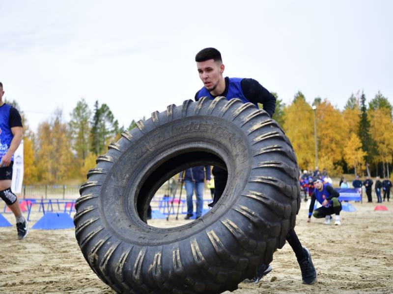 Силово-функциональное упражнение, имитирующее элементы становой тяги, подрыва от колен и жима вверх. Участнику необходимо за отведённое время перевернуть покрышку максимальное количество раз. Упражнение направлено на развитие общей силы, взрывной мощности и выносливости, а результат определяется количеством корректно выполненных повторений за установленный промежуток времени.