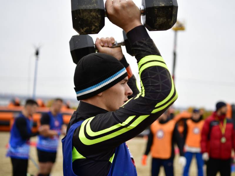 Cиловое упражнение, выполняемое с использованием гантелей весом 16 кг для мужчин и 8 кг для женщин. Участнику необходимо за отведённое время выполнить максимальное количество подъёмов гантели. Упражнение направлено на развитие силы и выносливости мышц рук и плечевого пояса, а результат определяется количеством технически корректно выполненных повторений за установленный промежуток времени.