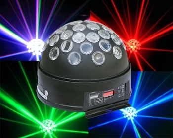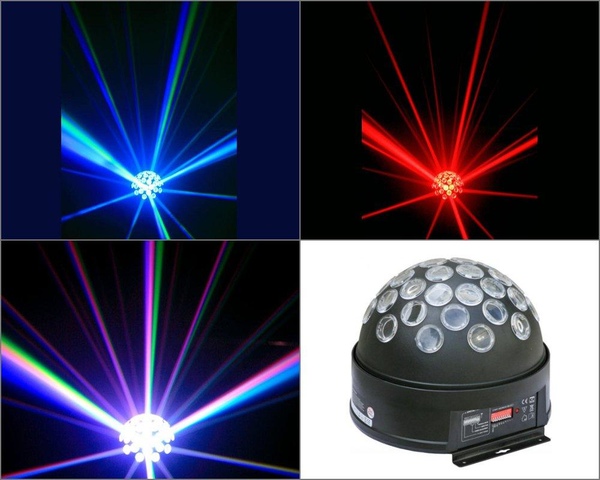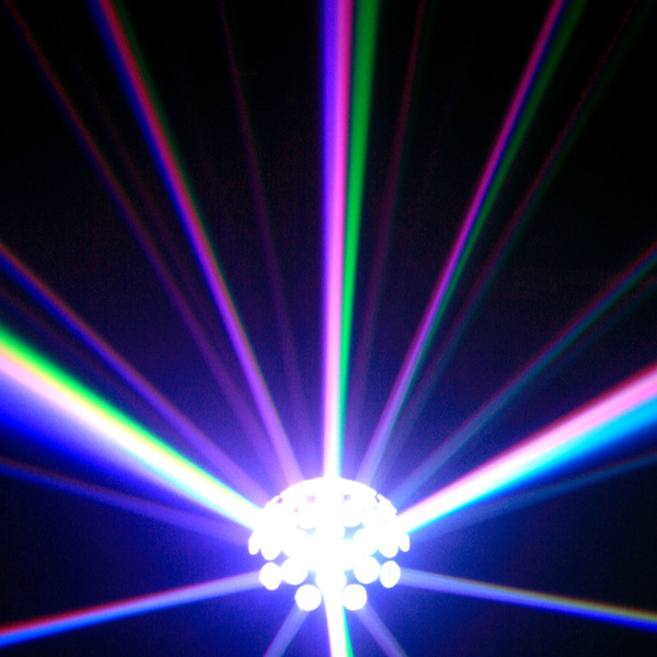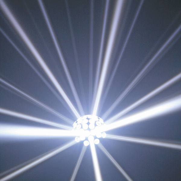 Этот цветомузыкальный компактный светодиодный прибор идеально подходит в качестве центрального эффекта для любого мероприятия, напоминая вращающийся зеркальный шар. Он создает невероятно яркие и динамичные лучи, превосходящие эффекты на галогенных лампах. Вам не придется беспокоиться о замене ламп, ведь у него очень долгий срок службы. Прибор практически не нагревается, потребляет минимум энергии и очень легкий.