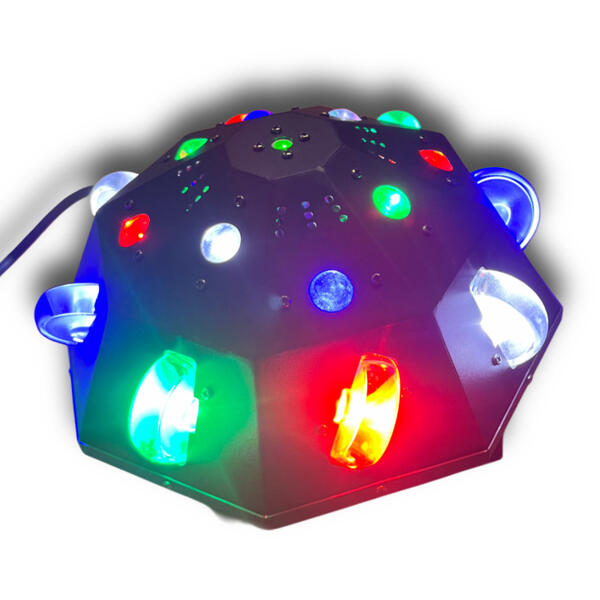 Многолучевая LED-полусфера, отлично подходящая мобильным ди-джеям для организации танцевальной атмосферы буквально парой цветомузыкальных аппаратов (особенно эффективна в дыму хейзеров и фейзеров!). Этот световой сценический прибор сочетает в себе функции лазера, заливки, строба и Бим-лучей, что делает его незаменимым элементом для любых шоу-программ. Превосходное качество освещения позволяет создавать красочные спецэффекты. Охватывает приличную площадь и насыщает пространство яркими цветами и узорами. Подходит для профессиональной и полупрофессиональной работы в клубах, на сценах и в других развлекательных заведениях. Он легко интегрируется в стилистически любое помещение и не требует сложной настройки. Оборудован самоохлаждением, что гарантирует продолжительное функционирование без перегревов. Основные преимущества: широкий охват, лазер-залив-стробоскоп-Beam в одном устройстве, вращение для динамичного и плавного движения, простота пользования.