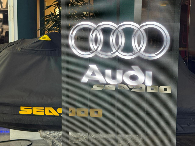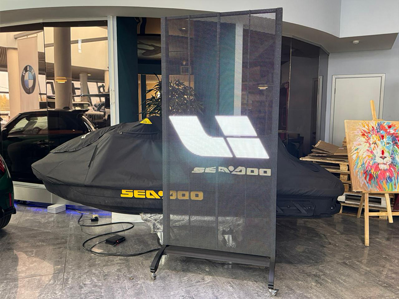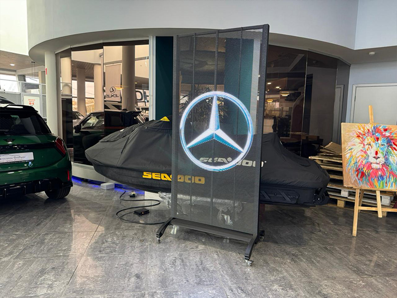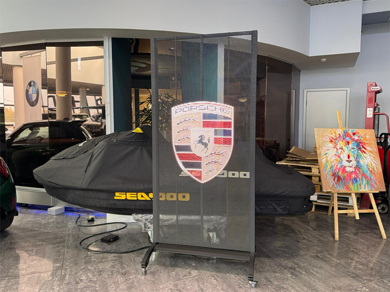 Экран обеспечивает чёткое и яркое изображение, при этом его прозрачная структура не перегружает пространство и сохраняет обзор позади него. Это подходит для презентаций, показов, корпоративных программ, выставок и концертных площадок, где зрители могут находиться близко к экрану.