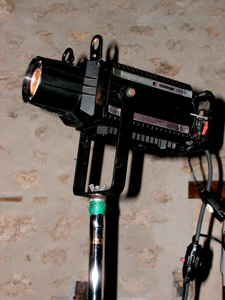Небольшой профильный прожектор производства Итальянской фирмы Coemar часто применяется в качестве точного луча для зеркального шара (обычно ставим с 2 или с 4 сторон от мотора с шариком, предварительно прорезав в жестяной заслонке необходимого размера отверстие). Светоэффект с повышенной светоотдачей, выдающий направленный луч света с возможностью установки цветофильтров. Может работать с трафаретами - ГОБО-логотипами. Эргономичный компактный дизайн корпуса лирой на собственном блоке питания, мощный оптический объектив с конденсором. Применим как для рекламного оформления витрин и экспозиций (подсветка манекенов), так и для бим-подсветки дискоболов диаметром до 50-60см.