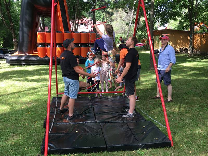 Условия успешного покорения аттракциона действительно просты на первый взгляд: добраться по подвесной лестнице до самого верха и зафиксировать достигнутый результат, нажав на кнопку или позвонив в колокольчик. Но весь фокус испытания в том, что лестница закреплена лишь в двух местах по центральной оси, поэтому реагирует на малейшее смещение центра тяжести жёсткой попыткой перевернуть очередного покорителя.