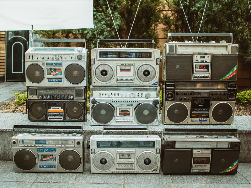 - Типы аппаратуры: магнитофоны-бумбоксы, проигрыватели виниловых пластинок, микрофоны, акустика, усилители