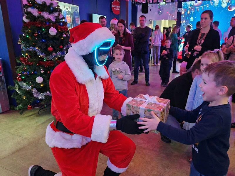 • Может сопровождать Деда Мороза и Снегурочку, усиливая программу современным интерактивом.