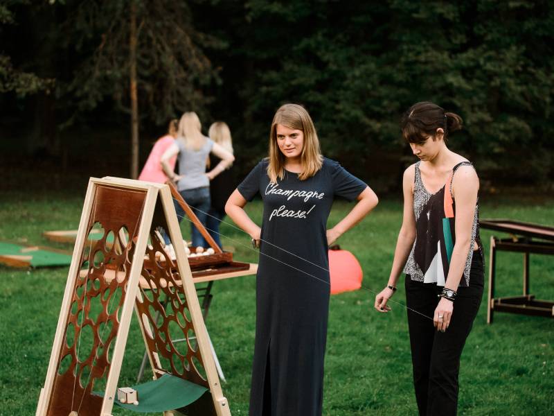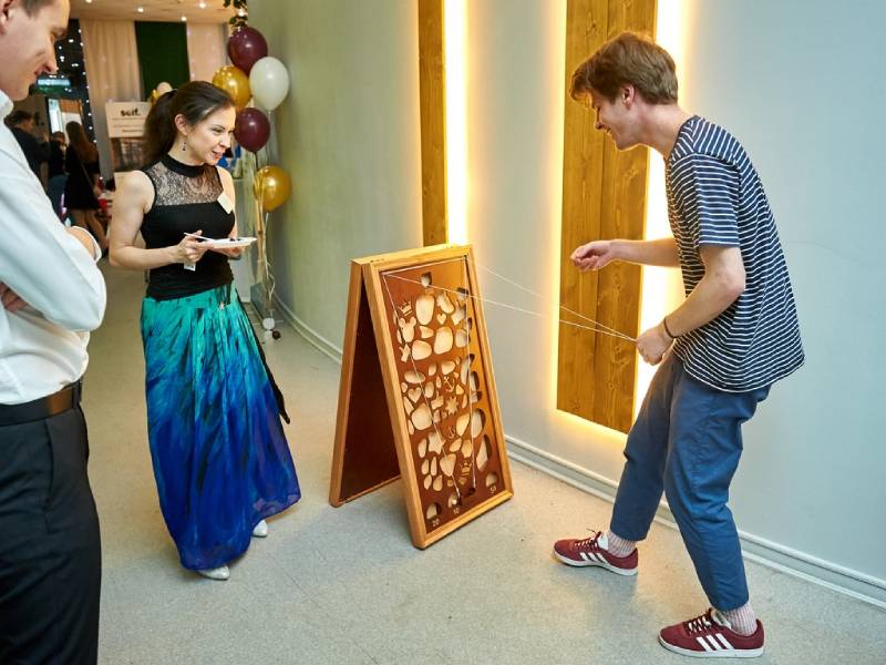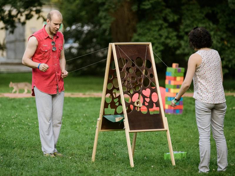 Игра на ловкость рук, терпение и мелкую моторику. Игроки соревнуются, направляя маленький шарик по сложной извилистой дорожке с помощью веревочных натяжителей. Задача соперников — первым довести шарик от стартовой позиции до финишной отметки «100», минуя препятствия и отверстия.