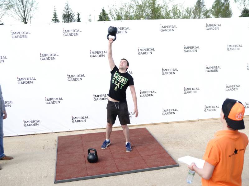 Силовое упражнение на выносливость, координацию и взрывную мощь. Для выполнения используются гири весом 16 кг для мужчин и 8 кг для женщин. Задача участника — за отведённое время выполнить максимальное количество подъёмов гири, соблюдая правильную технику и контроль движений. Упражнение задействует мышцы всего тела, развивает силу хвата, плечевого пояса и ног.