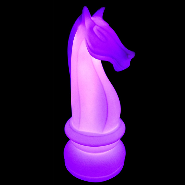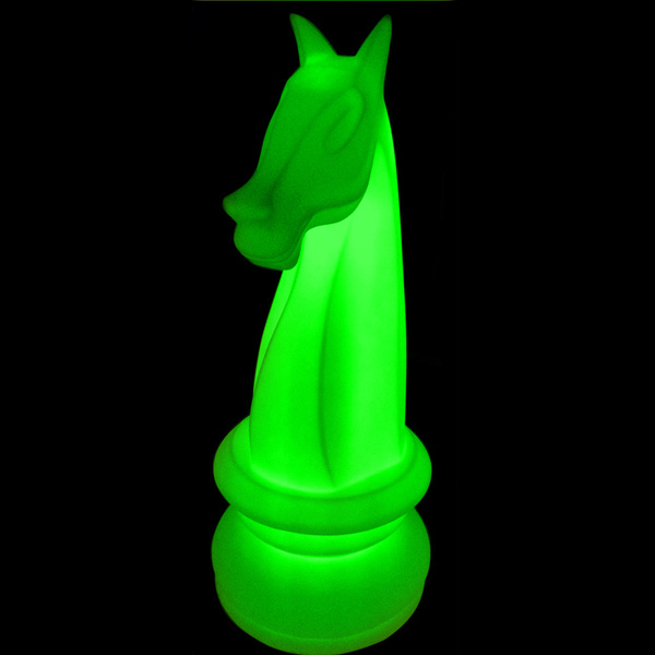 Объемная фигура KNIGHT-конь светится благодаря встроенным светодиодам и аккумулятору, легко управляется с дистанционного пульта, позволяя менять скорость смены цвета, использовать стробирование или выбрать оттенок для продолжительного свечения. Этот многоцветный LED Жеребец идеально подходит для оформления парадного подъезда в ночной клуб или на Party в темное время суток, для детских праздников и Дней Рождения, особенно для тех, кто родился под знаком лошади. При желании можно собрать полный набор LED-шахмат для игры или стилизации помещения под волшебную шахматную секцию.
