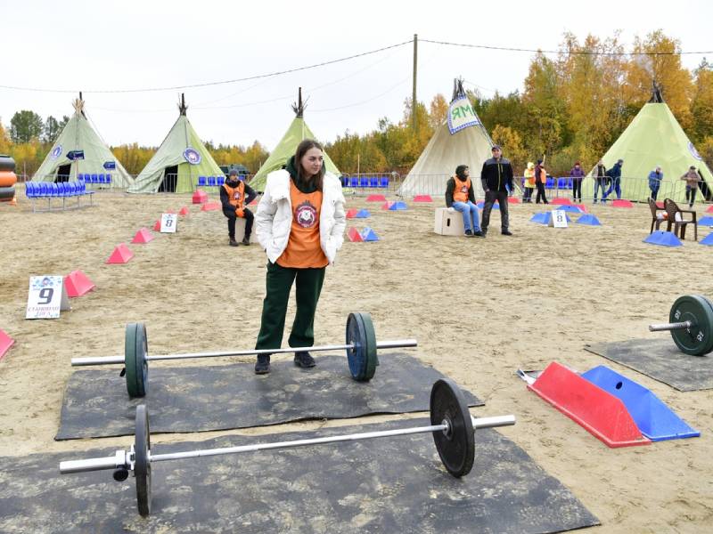 Силовое упражнение, выполняемое с использованием грифа весом 20 кг с дополнительными блинами: 20 кг для мужчин и 10 кг для женщин. Участнику необходимо за отведённое время поднять гриф с земли до уровня пояса максимальное количество раз. Упражнение направлено на развитие силы и выносливости мышц спины, ног и корпуса, а результат определяется количеством технически корректно выполненных повторений за установленный промежуток времени.