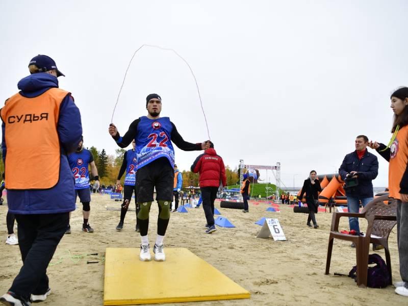 Динамичное упражнение, направленное на развитие выносливости, координации и скоростных качеств. Участнику необходимо за отведённое время выполнить максимальное количество прыжков. Для выполнения упражнения используются скакалки с электронным подсчётом оборотов, что обеспечивает точную фиксацию результата, который определяется количеством корректно выполненных прыжков за установленный промежуток времени.
