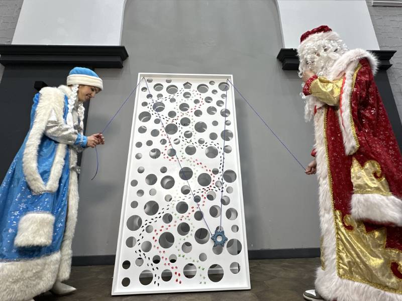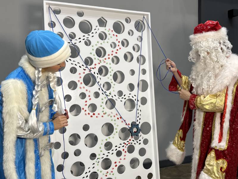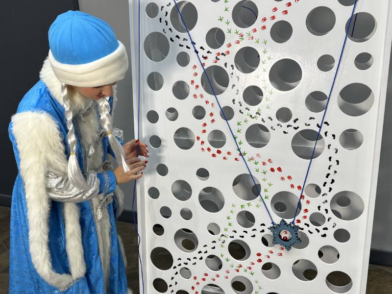 Двигаемся след в след по сугробам, чтобы не провалиться в снег по самые «уши». Участники с помощью верёвок и кольца, привязанного к их концам, ведут шарик по белоснежной наклонной доске. Главные сложности – их две: 1) пройти по следам, оставленным на снегу, 2) не допустить, чтобы шарик провалился в многочисленные отверстия на пути. Идеально подходит для сбора гостей в качестве игровой станции, конкурсов и активностей с ведущим.