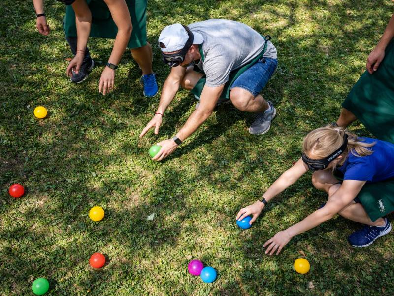 Динамичная командная игра, в которой участники надевают специальные очки, переворачивающие или искажающие изображение и полностью меняющие привычное восприятие пространства. В условиях дезориентации игрокам необходимо передвигаться по полю и собирать только свои предметы — определённого цвета и формы, не отвлекаясь на чужие. Задача требует концентрации, координации, внимательности и слаженной работы в команде. Игра вызывает море смеха, азарта и ярких эмоций, отлично подходит для тимбилдингов, корпоративных мероприятий, праздников и активных развлекательных программ.
