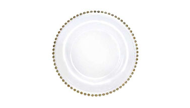 Стеклянная подстановочная тарелка Хани стекло 32 см в аренду на мероприятие