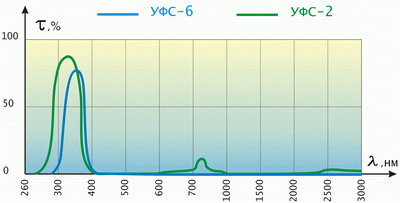 - Светофильтры: из черного увиолевого стекла УФС-6, встроены в двухсекторную рамку