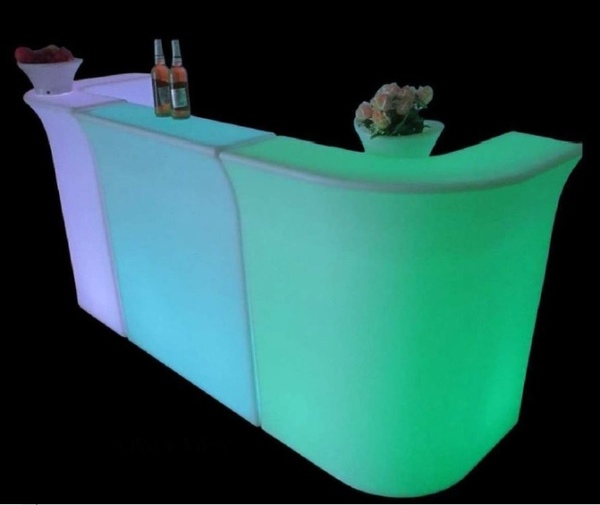 Наши барные стойки с внутренней подсветкой легко брэндируются прозрачными наклейками с логотипами, слоганами или поздравлениями. Светящаяся стойка разборная, может использоваться как в помещении, так и на открытом воздухе. Управление светодиодами осуществляется пультом ДУ. Это простое, неприхотливое, но надежное оборудование идеально для баров, отелей, клубов, парков и как оригинальная световая инсталляция на мероприятиях. Три вида элементов состыковываются в произвольном порядке, позволяя создать замкнутое пространство бара или отделить бармена от гостей.